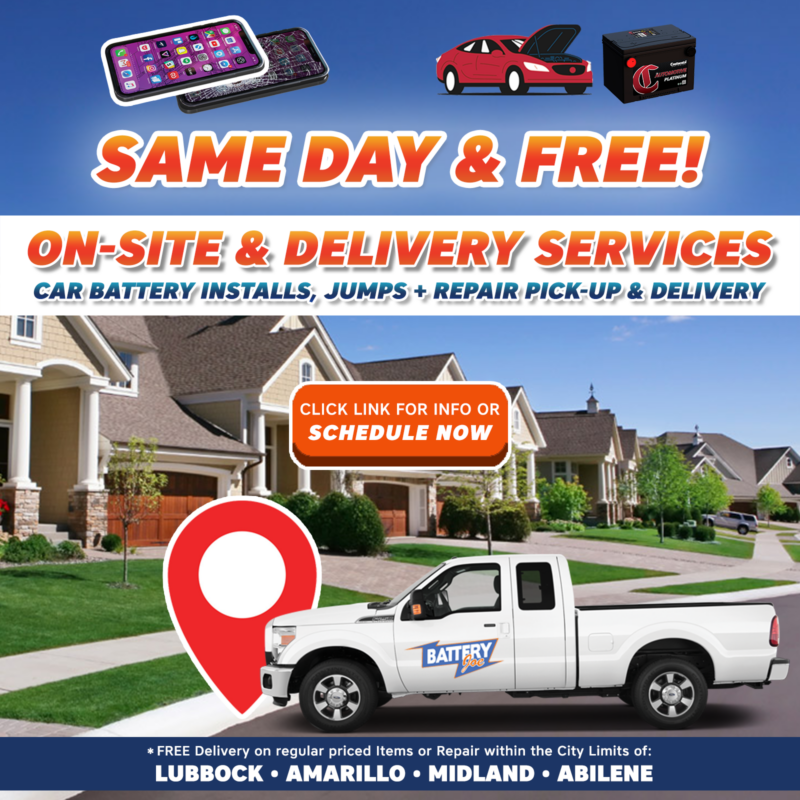 Battery Joe now offers Same Day On-Site Car Battery Services including: Car Battery Replacement, Jump-Starts, and Testing! In addition, we also offer Pick-Up and Delivery of all device repair including iPhone Repair, iPad Repair, Google Repair, and more. Our team will connect with you, pick up your device at your location, repair it, and deliver it back to you all within the same day! Simply call one of our store locations through the links below or fill out the quick form below to specify what service or product you need completed. After the form/information is sent to our store, we will then contact you and complete the service or product order request and deliver it right to your door! Phone repairs, car battery replacements, and store item purchases just became much easier with our pick-up and delivery service!